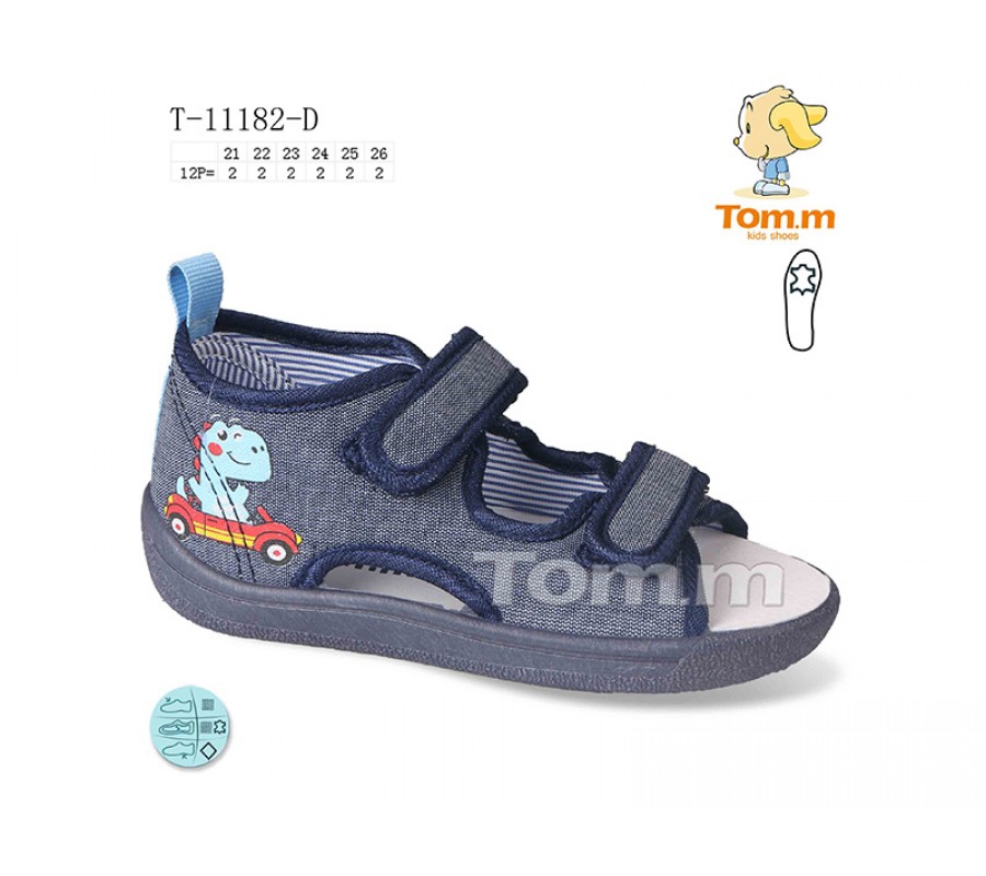 Tom.M mėlynos spalvos tapukai berniukams. Tapukai lengvi, medžiaginiai, su odiniu vidpadžiu ir neslystančiu paduku.